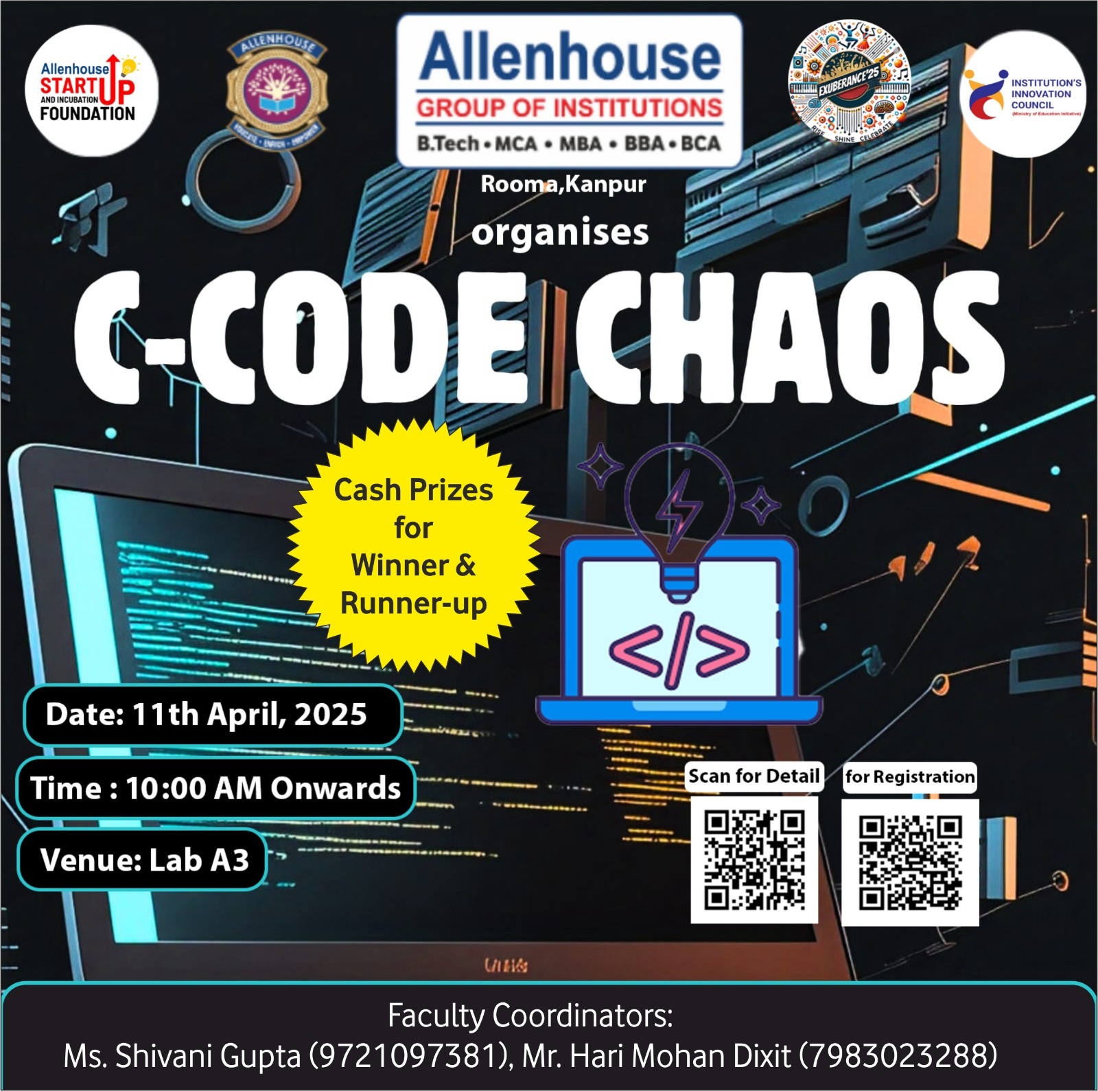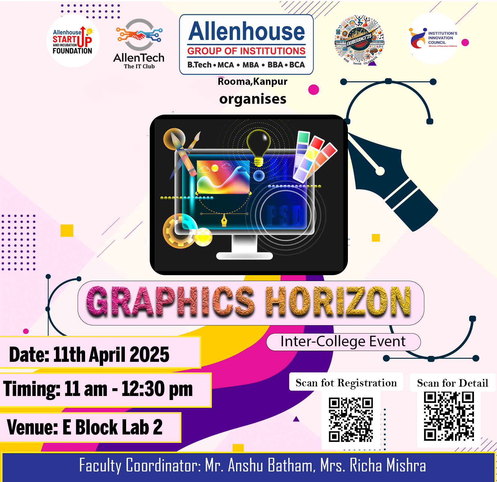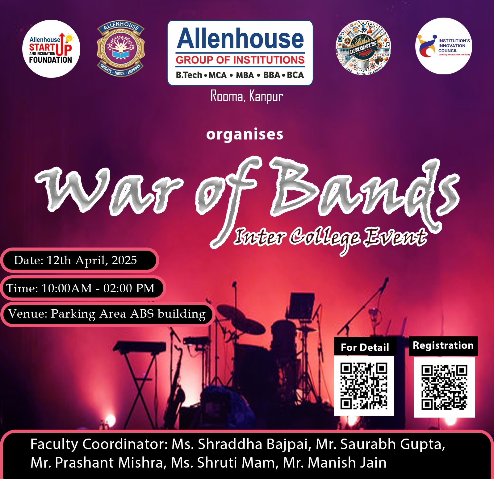 Exuberance is the annual two-day Techno-Cultural Fest of Allenhouse Group of Institutions, Rooma, Kanpur, set to take place on 11th & 12th April 2025. Inspired by the seamless fusion of technology, entrepreneurship, and leadership, Exuberance serves as a dynamic platform for young innovators, creators, and visionaries to showcase their talents and push the boundaries of possibility.